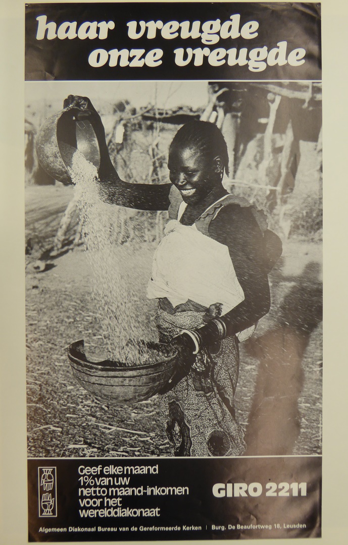 Affiche "Haar vreugde, onze vreugde Geef elke maand 1% van uw netto maand-inkomen voor het werelddiakonaat"