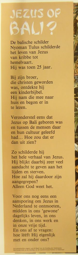 Tekst bij affiche geschilderde afbeelding van het leven van Jezus, gesitueerd op Bali