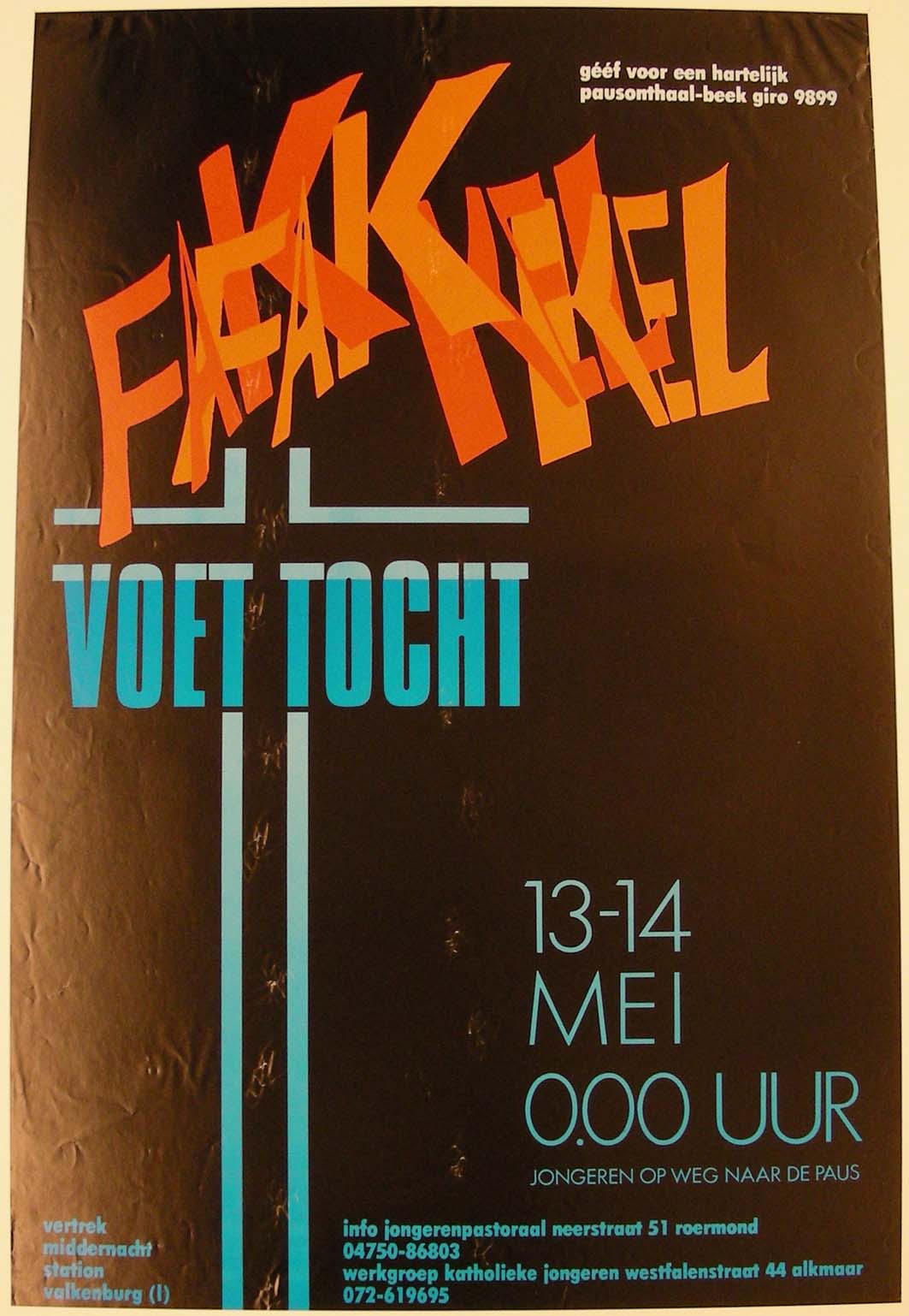 Affiche "Fakkel voettocht, Jongeren op weg naar de paus"