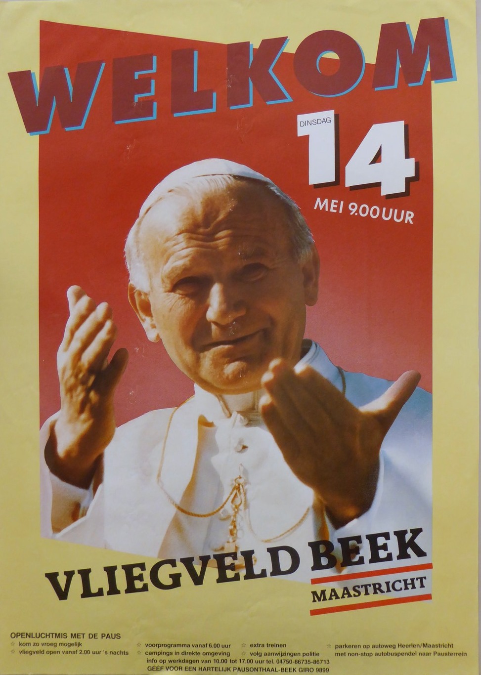 Affiche "Welkom Vliegveld Beek Maastricht" t.g.v. bezoek paus aan Nederland 1985
