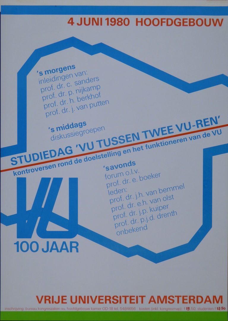 Affiche honderd jaar VU (serie): "Studiedag VU tussen twee vu-ren"