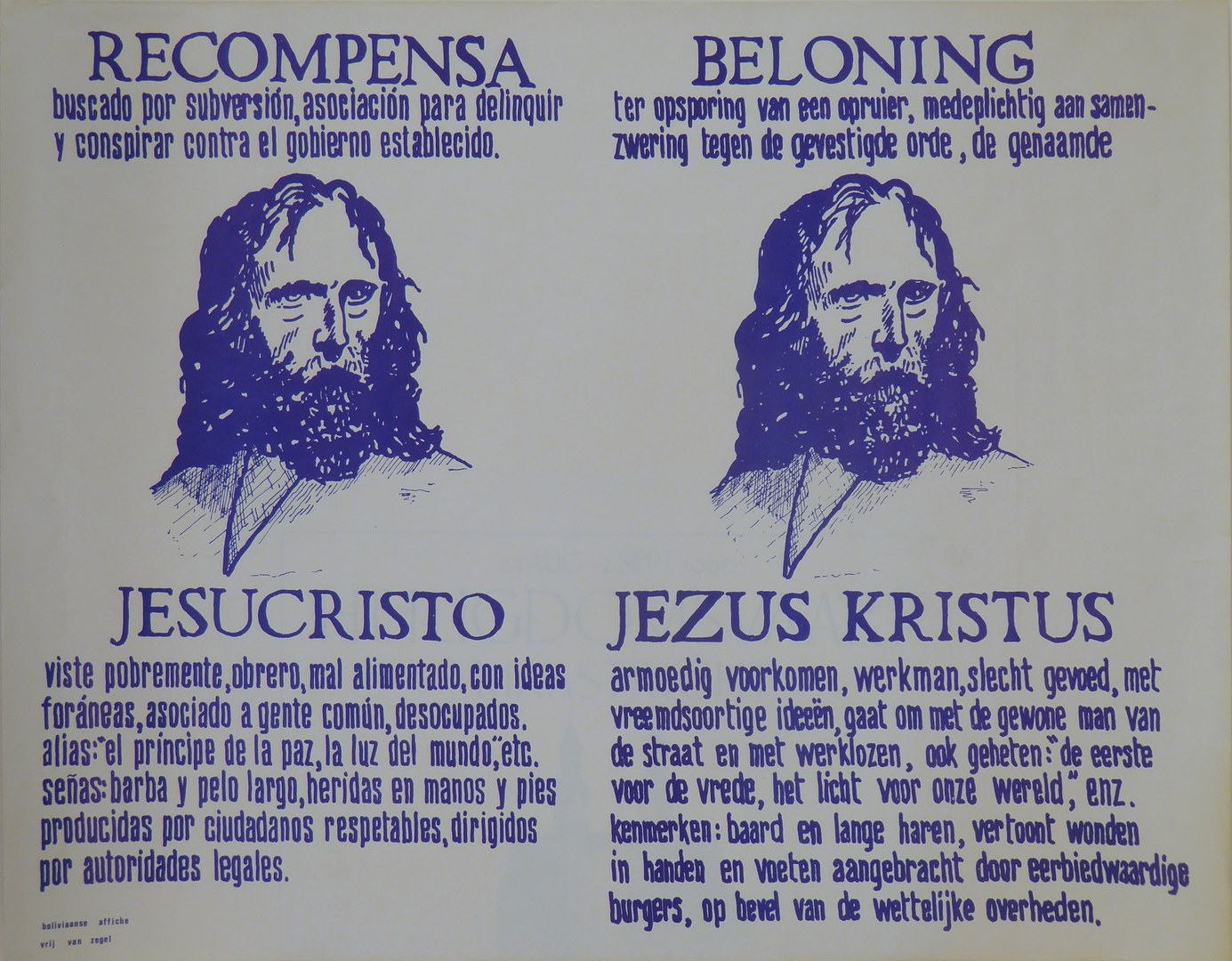 Affiche beloning Jezus Christus, "Recompensa Jesu Christo", Boliviaans affiche