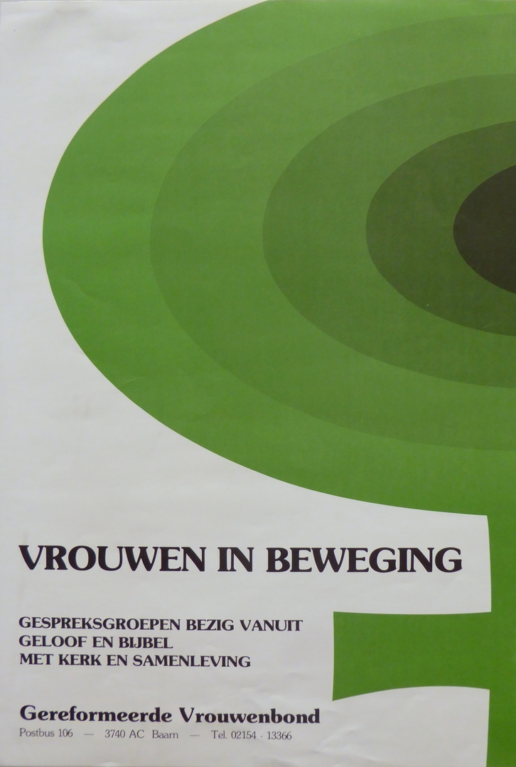 Affiche "Vrouwen in beweging", gespreksgroep vanuit geloof en bijbel met kerk en samenleving