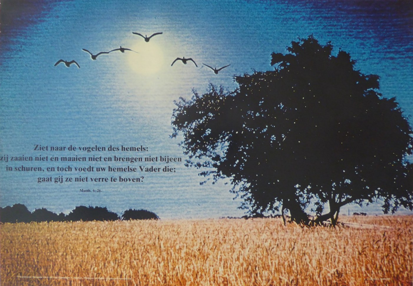 Affiche "Ziet naar de vogelen des hemels ..." (Mat.6:26)