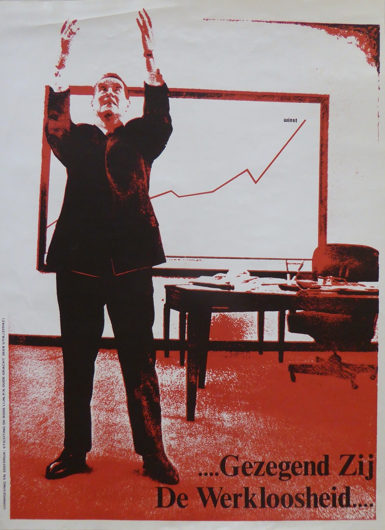 Affiche "Gezegend zij de werkloosheid"