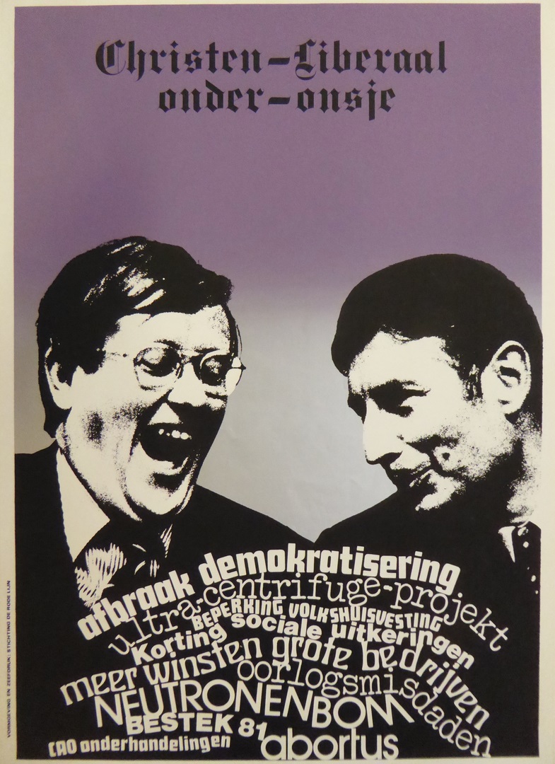 Affiche "Christen-liberaal onder-onsje", van Agt, Wiegel 'onderhandelend'
