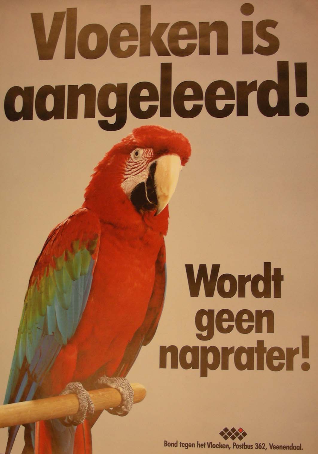 Affiche "Vloeken is aangeleerd, wordt geen naprater!"