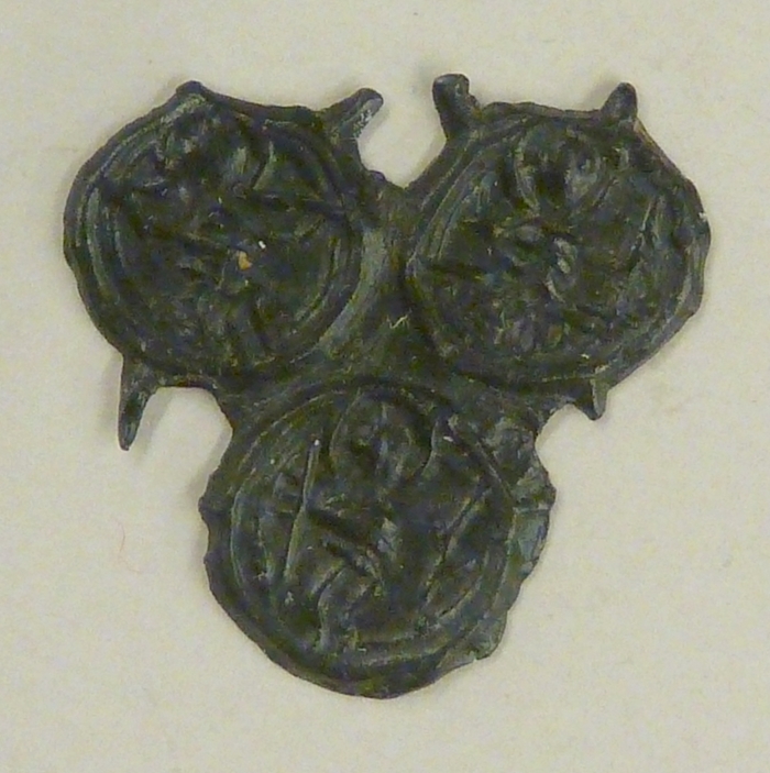 Pelgrimsinsigne met Heilig Sacrament, met drie hosties waarop voorstellingen
