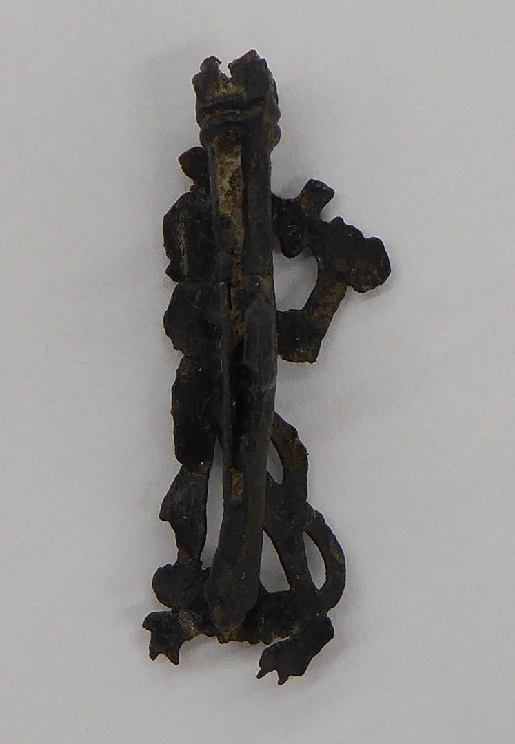 Pelgrimsteken, St. Joris, staande op de draak, met verenkoker