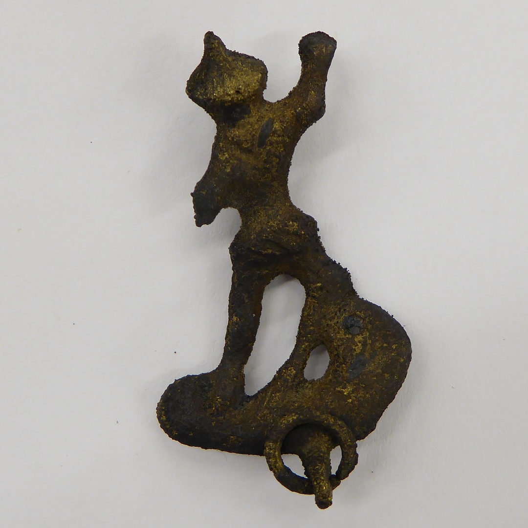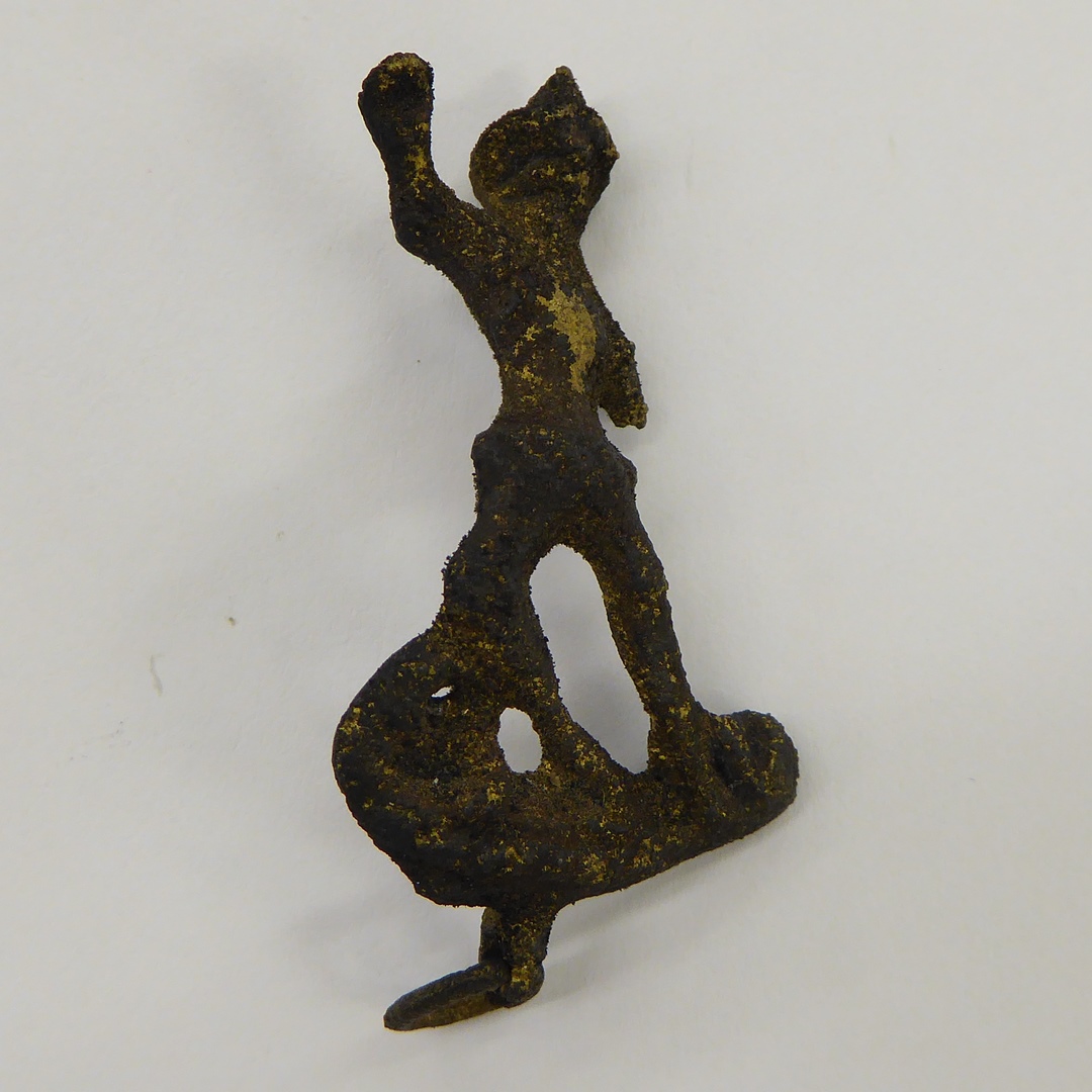 Pelgrimsinsigne(?) in vorm van hangertje met St. Michaël staande op de draak, driedimensionaal