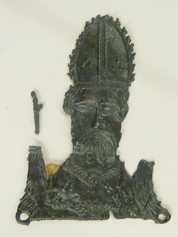 Pelgrimsteken met St. Servatius, Maastricht, in vorm van borstbeeld, geflankeerd door engeltjes
