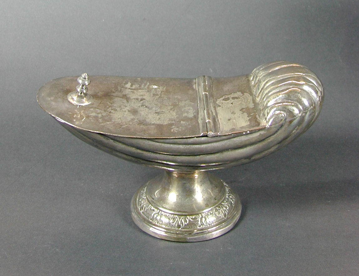 Wierookscheepje met bovenop wapen met vis en drie kroontjes