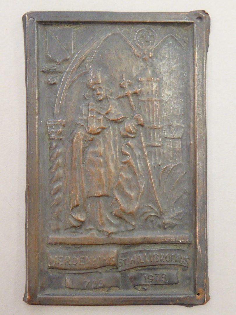 Plaatje met St. Willibrordus met "Herdenking St. Willibrordus 739 1939"
