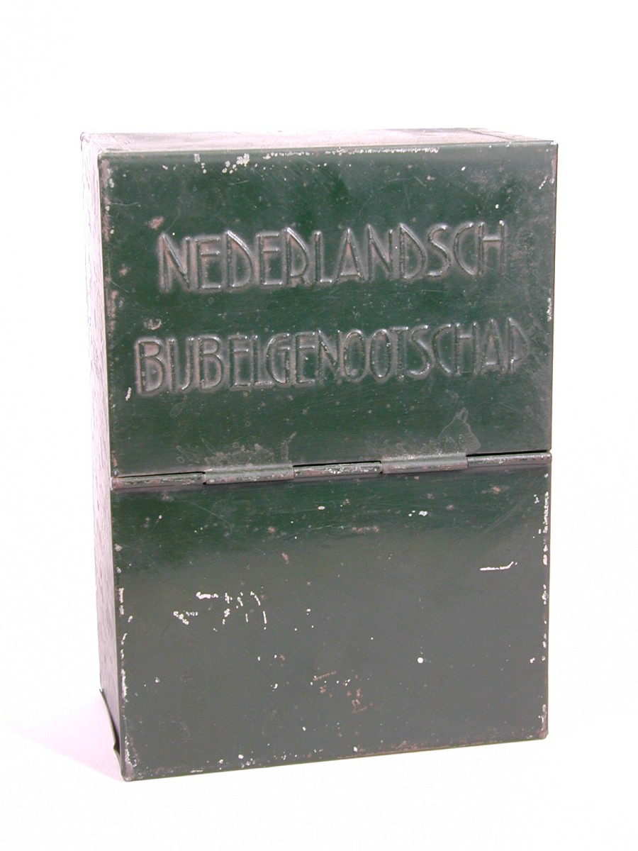 Doos voor bijbels, bestemd voor huiscolporteurs van het Nederlands Bijbelgenootschap
