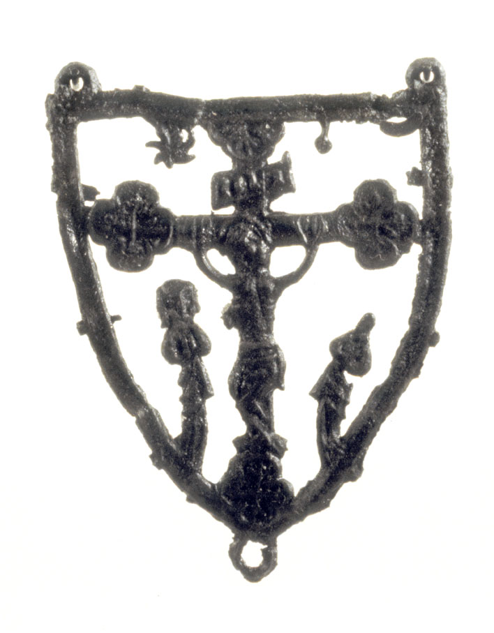 Pelgrimsinsigne met Calvarie, schildvormige omlijsting