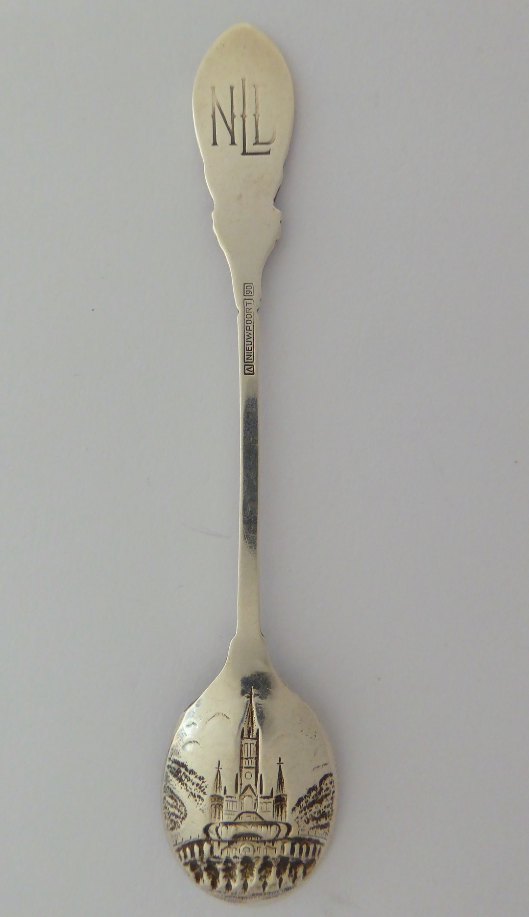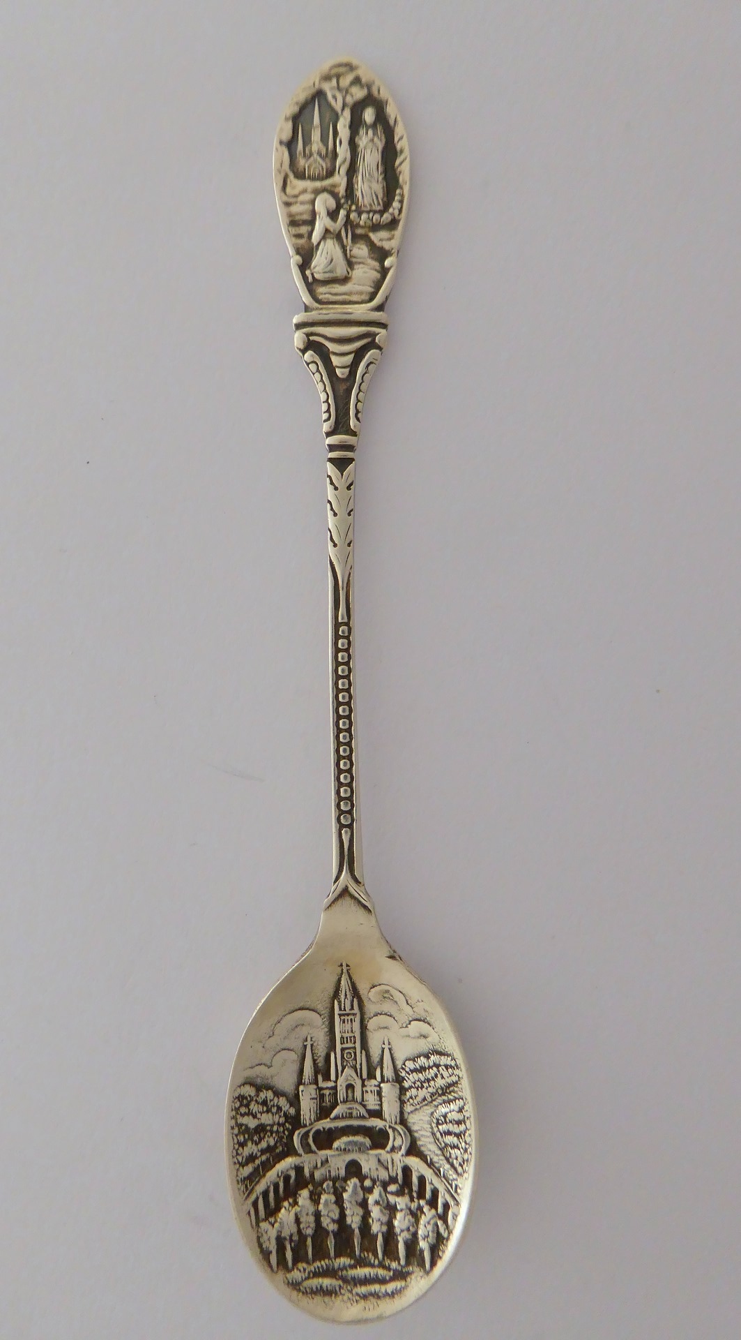 Theelepel met bovenop steel Lourdesgrot en in bakje de basiliek