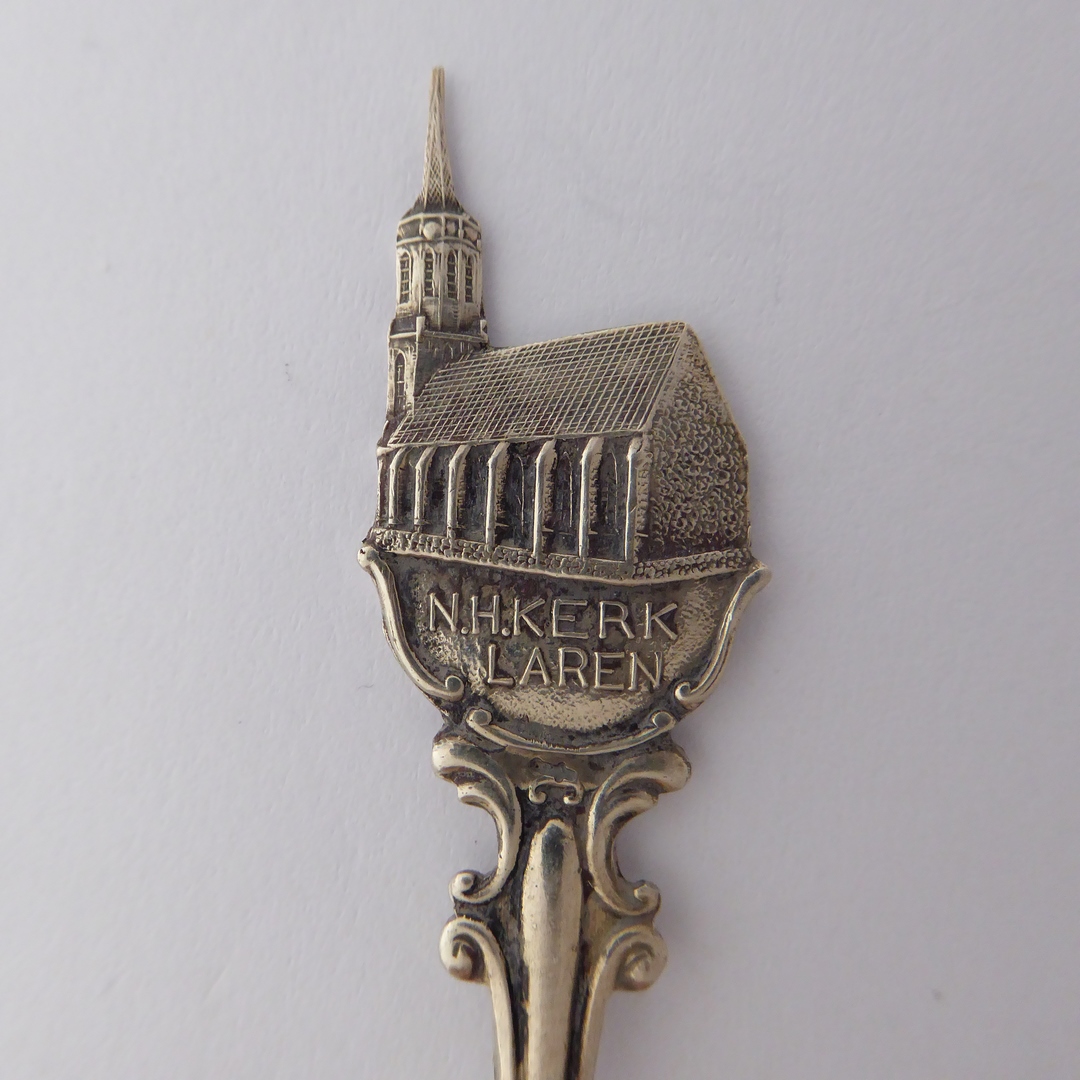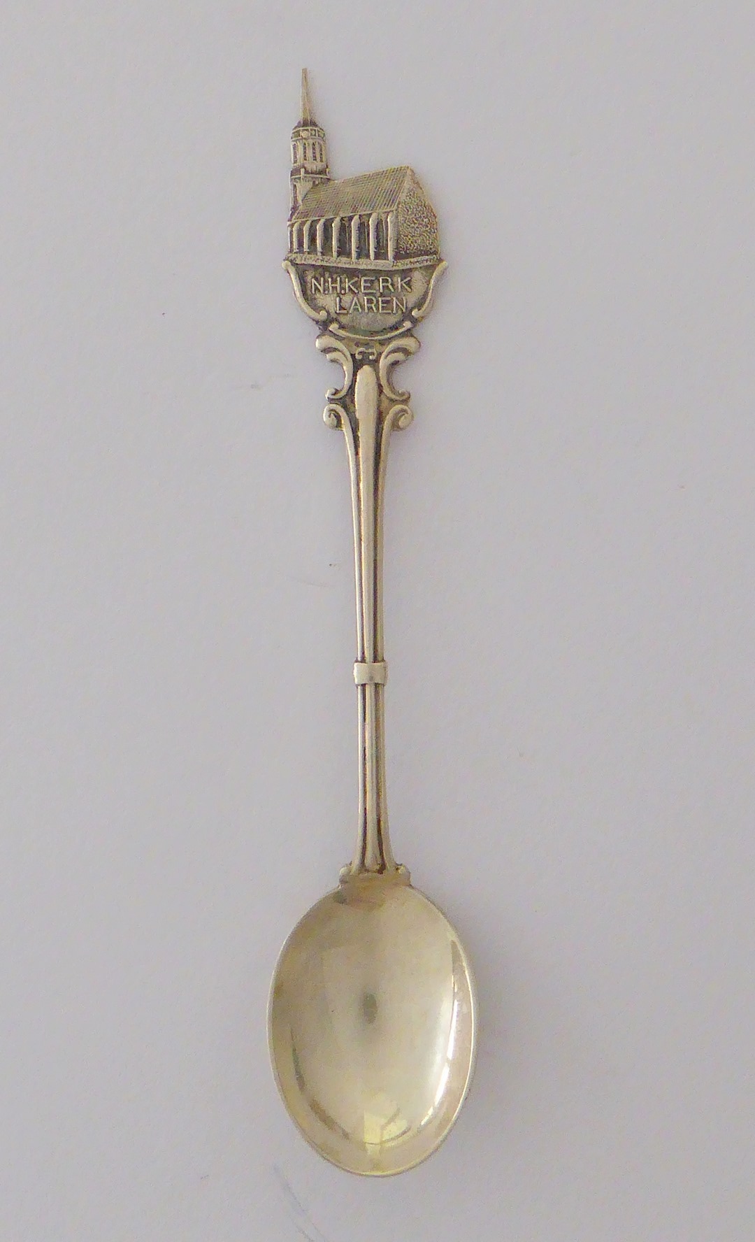Theelepel met "Laren N.H. kerk" met kerkgebouw