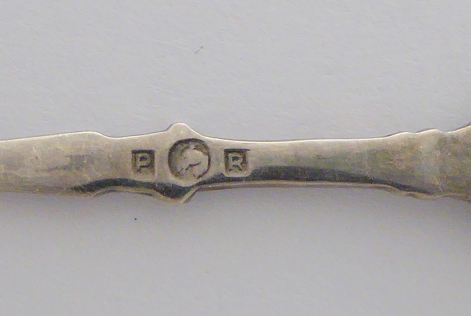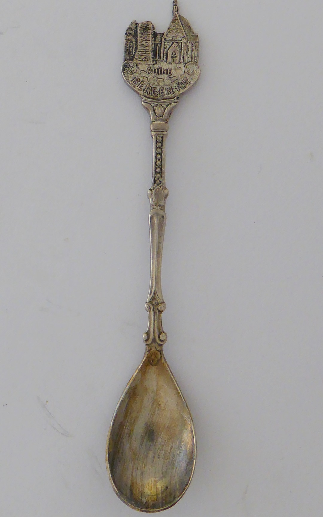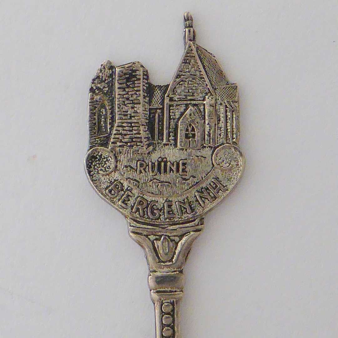Theelepel met "Bergen N.H. ruïne" met ruïne kerkgebouw