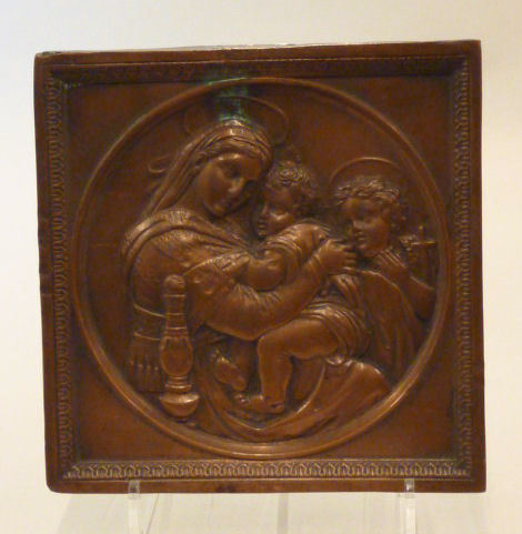 Maria met kind en Johannes de Doper, plaquette met reliëf naar tondo