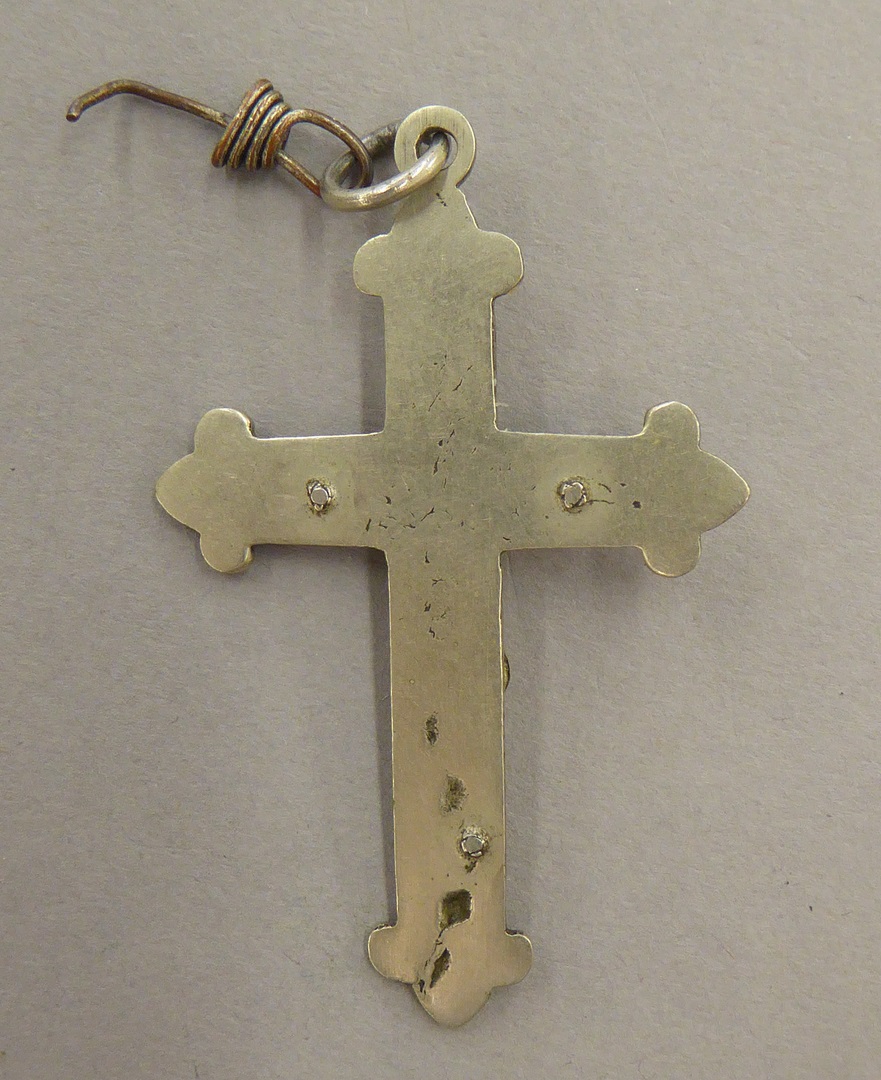 Halskruisje, leliekruis, met corpus, ingelegd met hout