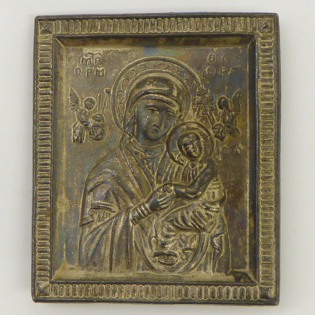 Icoon met Maria met kind, en twee engelen met passiewerktuigen
