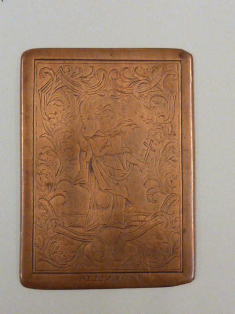 Koperplaat voor bidprentje met "S. Cornelia"