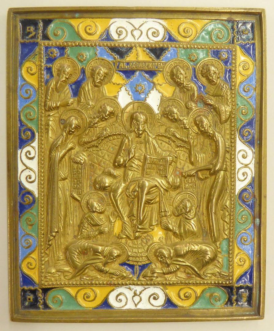 Uitgebreide Deësis van Solovki, groep heiligen wenden zich in voorbede tot centraal afgebeelde Christus