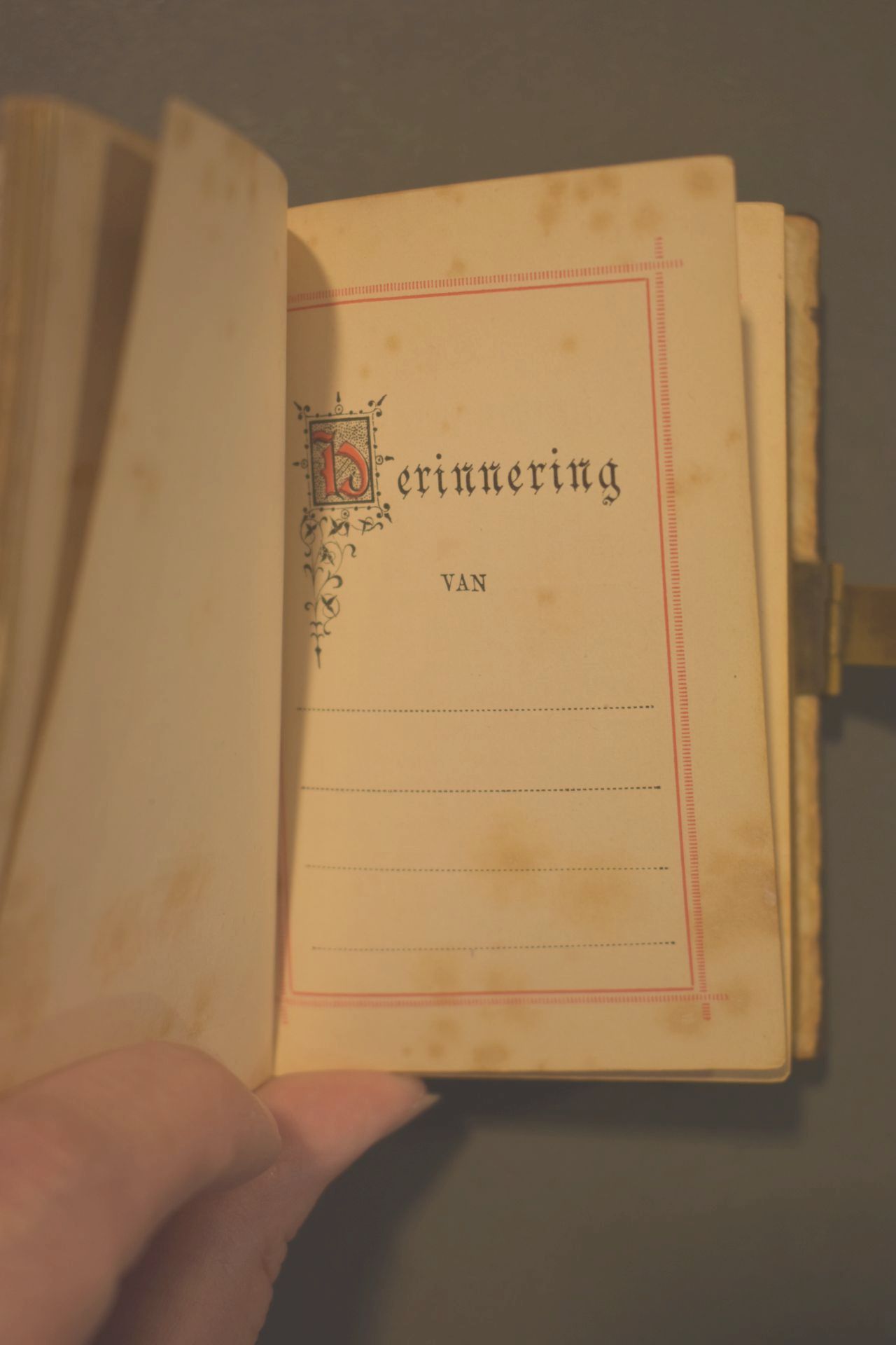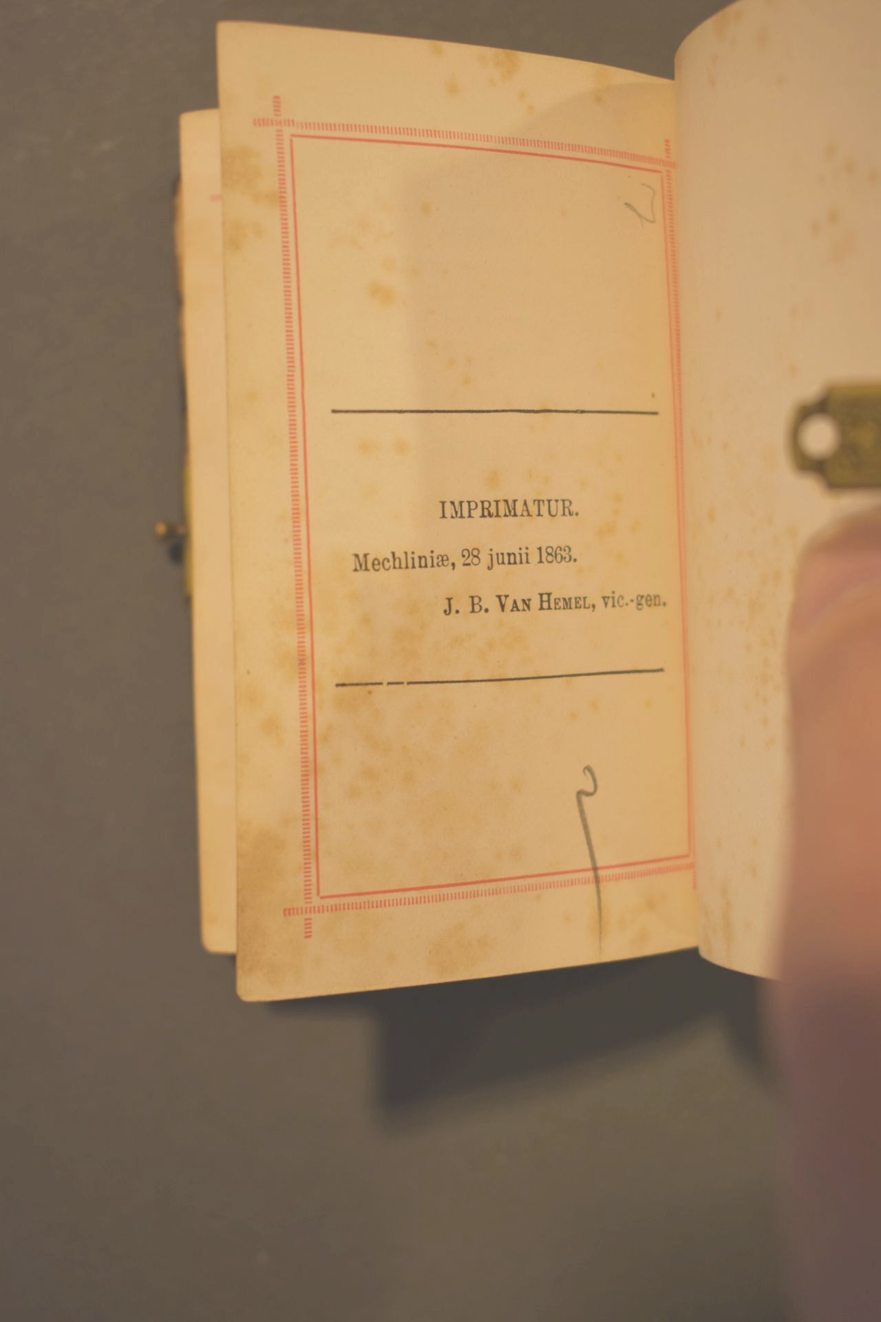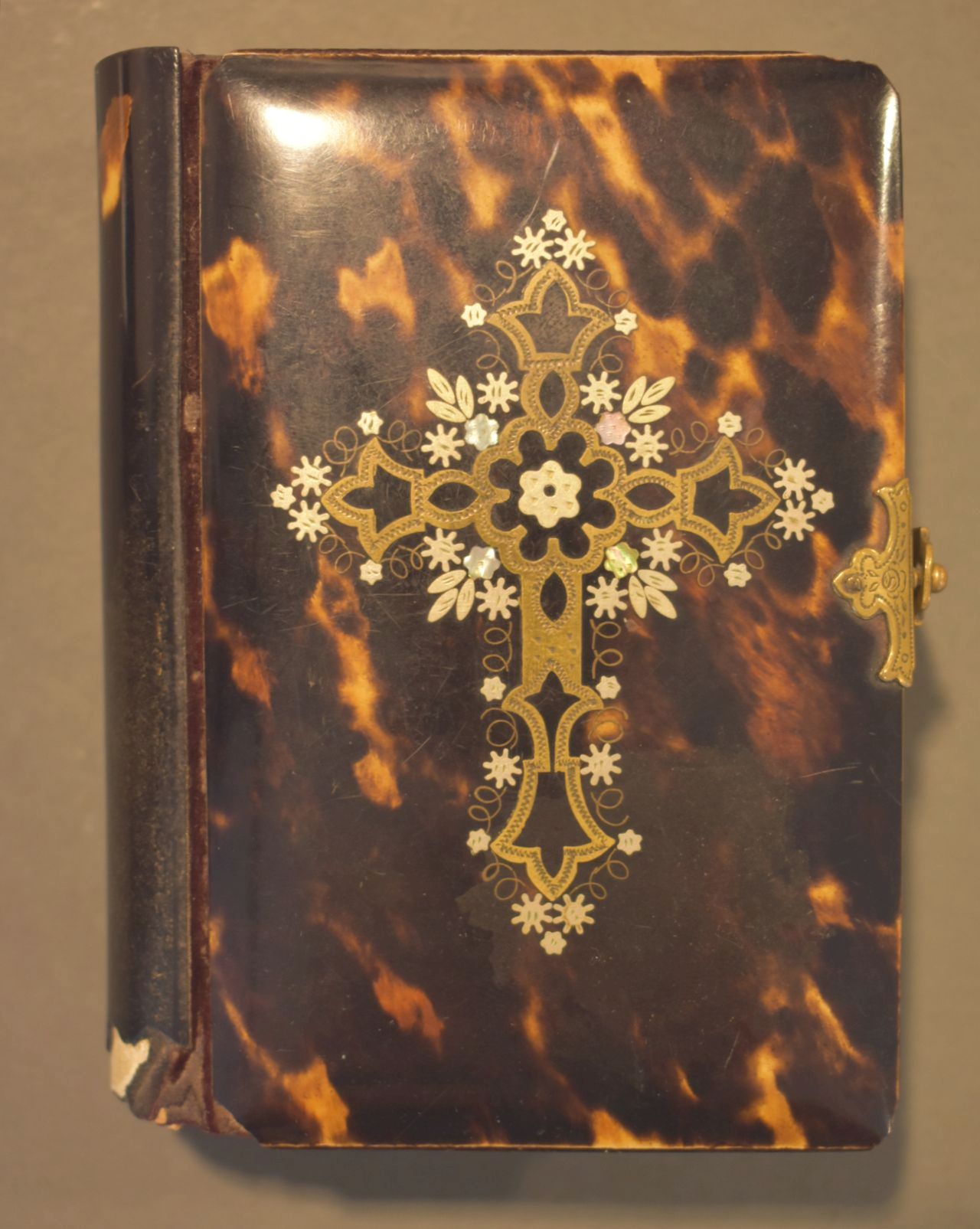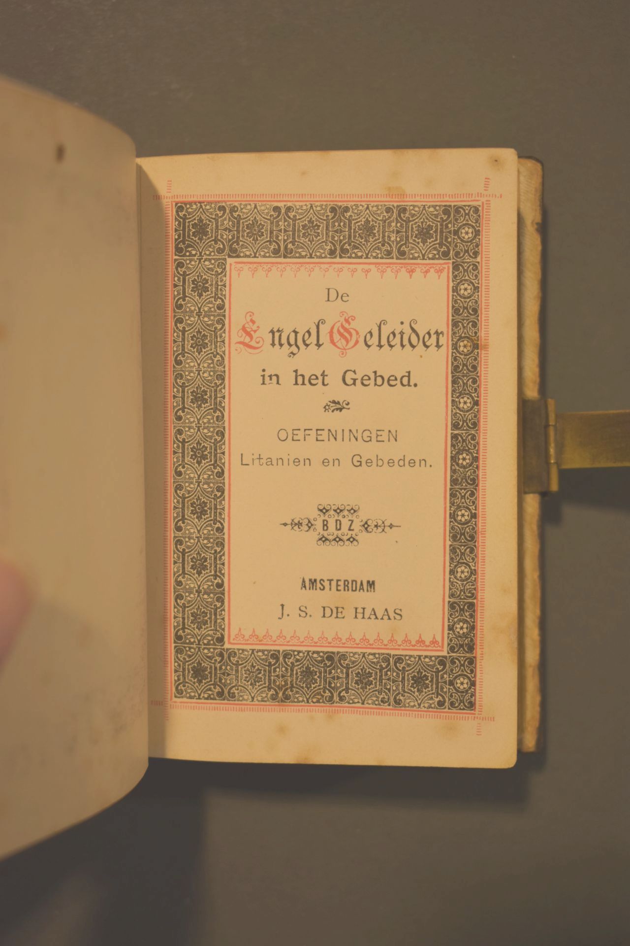 In het boek zitten twee decoratieve gravures/steendruk. Erin zit tevens een boekenlegger met Franciscus van Assisië. Ook is een tabel voor de feestdagen 1887-1898 weergegeven en is de snede verguld. De boekband is van namaak schildpad (een plastic) met in het voorplat een ingelegd kruis van messing en parelmoeren en messing bloemen en krullen. Het ...