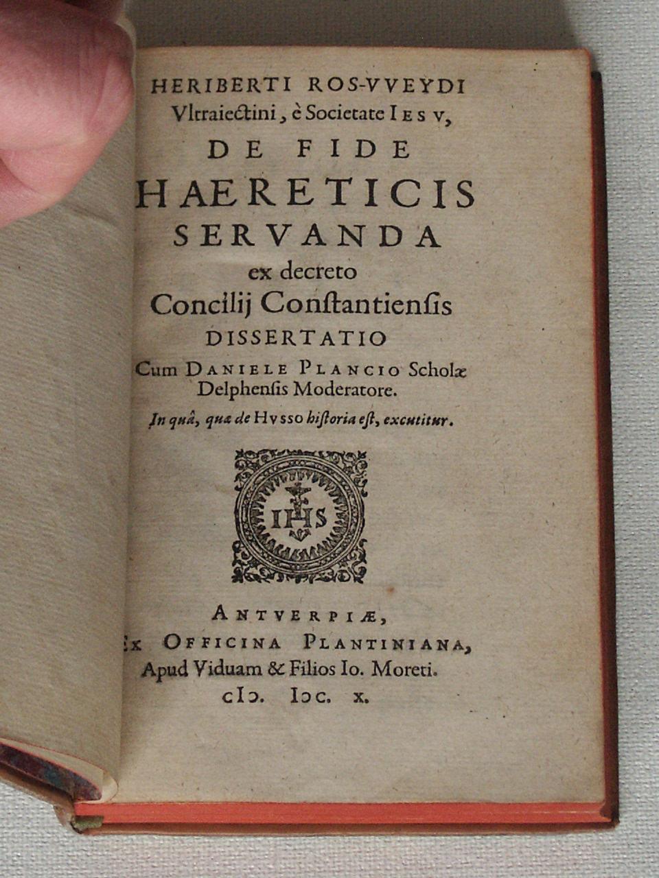 Heriberti Ros-weydi Vltraiectini, è Societate Iesv, De fide hæreticis servanda ex decreto concilij Constantiensis dissertatio cum Daniele Plancio scholae Delphensis moderatore. : In quâ, quæ de Hvsso historia est, excutitur