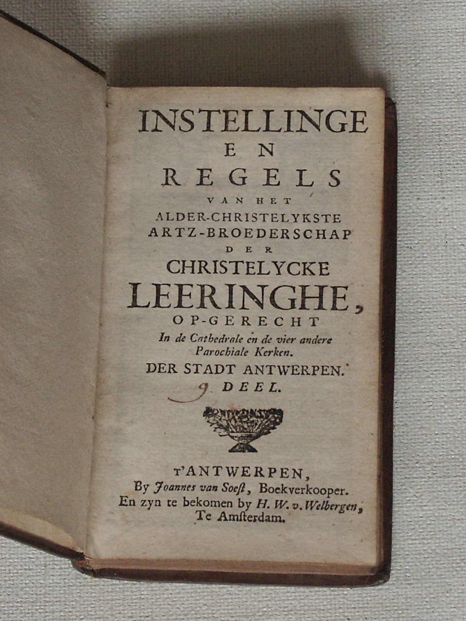 Instellinge en regels van het alder-christelyckste artz-broederschap der christelycke leeringe, opgerecht in de cathedrale en de vier andere parochiale kercken der stad Antwerpen, deel IX