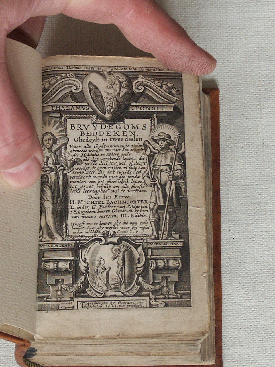Thalamus sponsi / Bruydegoms beddeken : Ghedeylt in twee deelen. Waer alle Godt-minnende zielen ghenoodt worden om naer den arbeydt der meditatie en andere goede oeffeninghe des werckende leuens [...] te gaen rusten in soete contemplatie ...