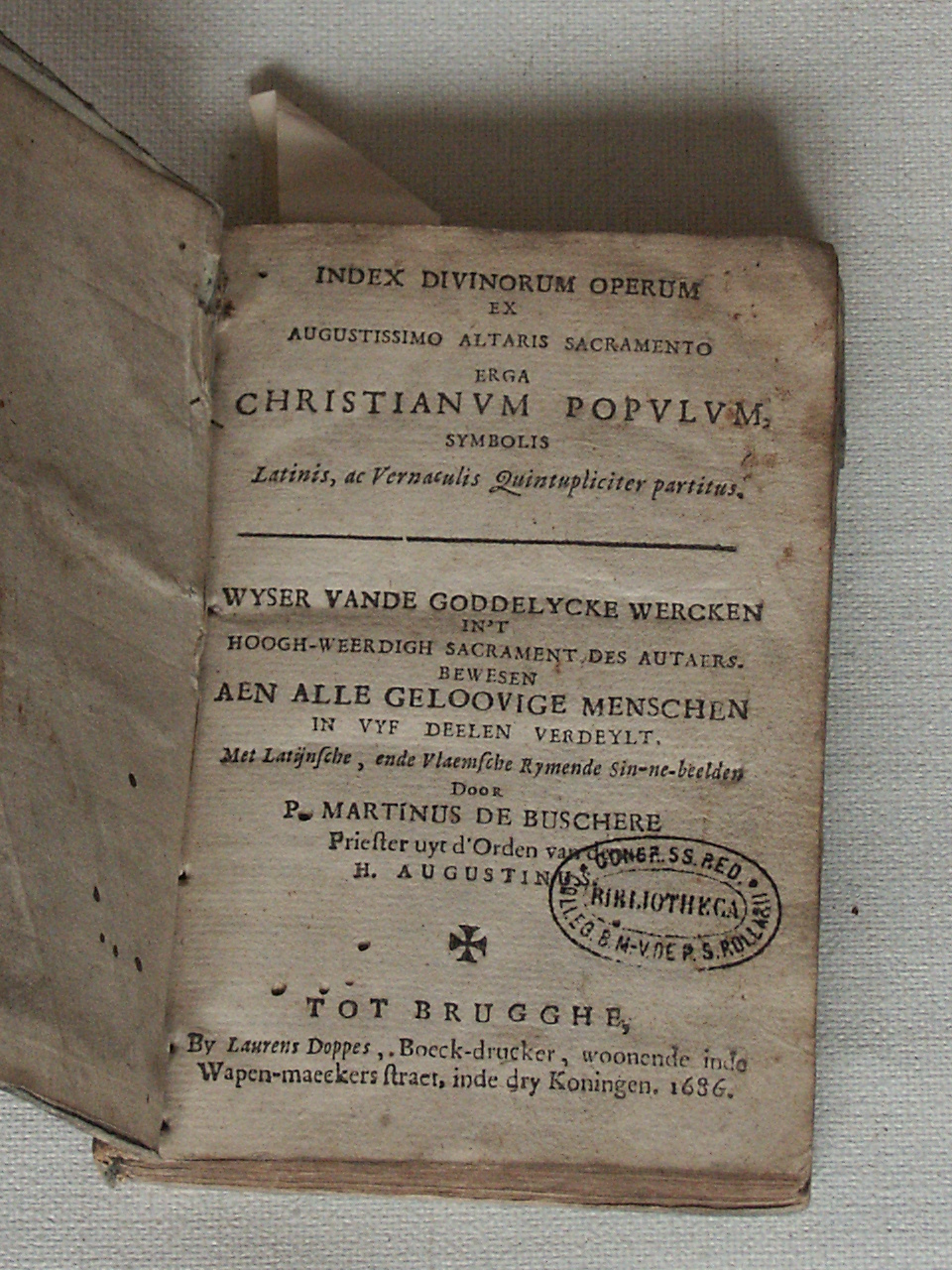 Index divinorum operum ex augustissimo altaris sacramento erga Christianum populum symbolis latinis ac vernaculis quintupliciter partitus. Wyser vande goddelycke wercken in't hoogh-weerdigh sacrament des autaers bewesen aen alle geloovige menschen in vyf deelen verdeylt, met latijnsche ende vlaemsche rymende sinne-beelden.