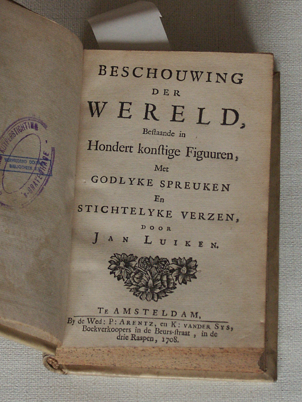 Beschouwing der wereld, bestaande in hondert konstige figuuren : met Godlyke spreuken en stichtelijke verzen