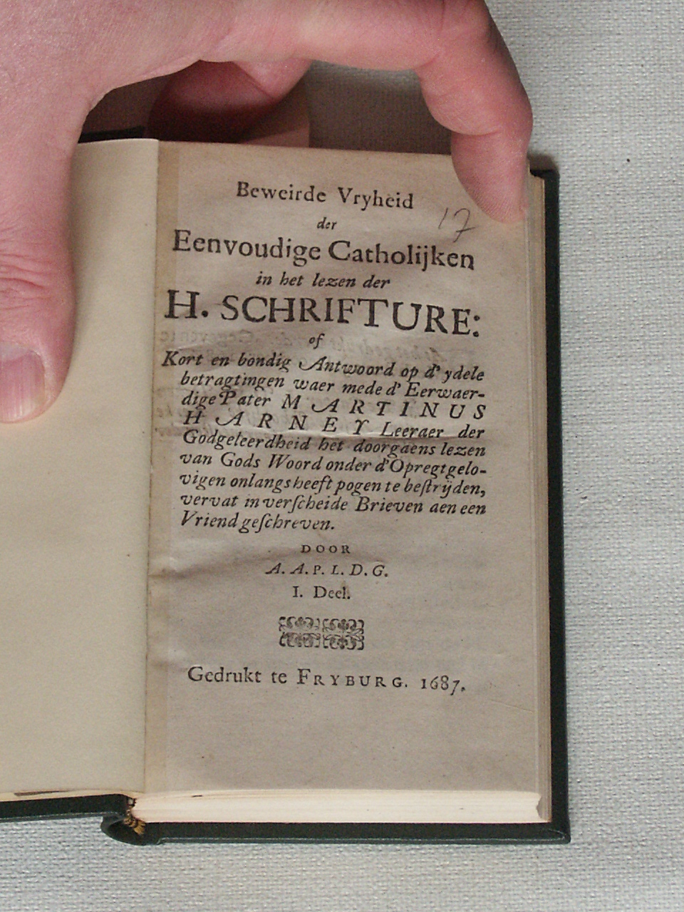 Beweirde vryheid der eenvoudige Catholijken in het lezen der H. Schrifture, of kort en bondig antwoord op d'ydele betragtingen waer mede [...] pater Martinus Harney [...] het doorgaens lezen van Gods woord onder d'opregtgelovigen heeft pogen te bestrijden, vervat in verscheide brieven aen een vriend geschreven, Deel I