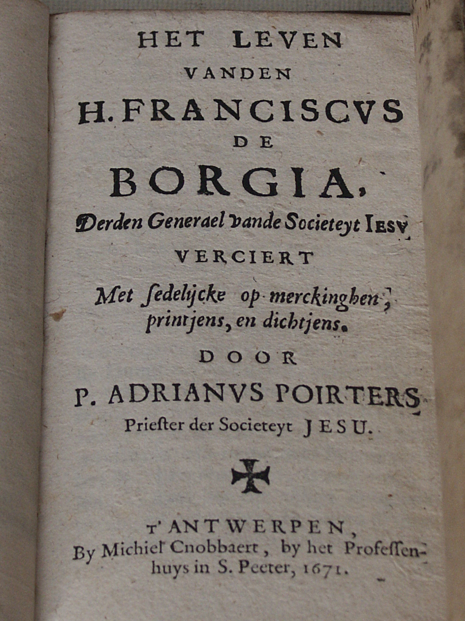Het leven vanden H. Franciscvs de Borgia, derden Generael vande Societeyt Iesv : verciert met sedelijcke op merckinghen, printjens, en dichtjens.