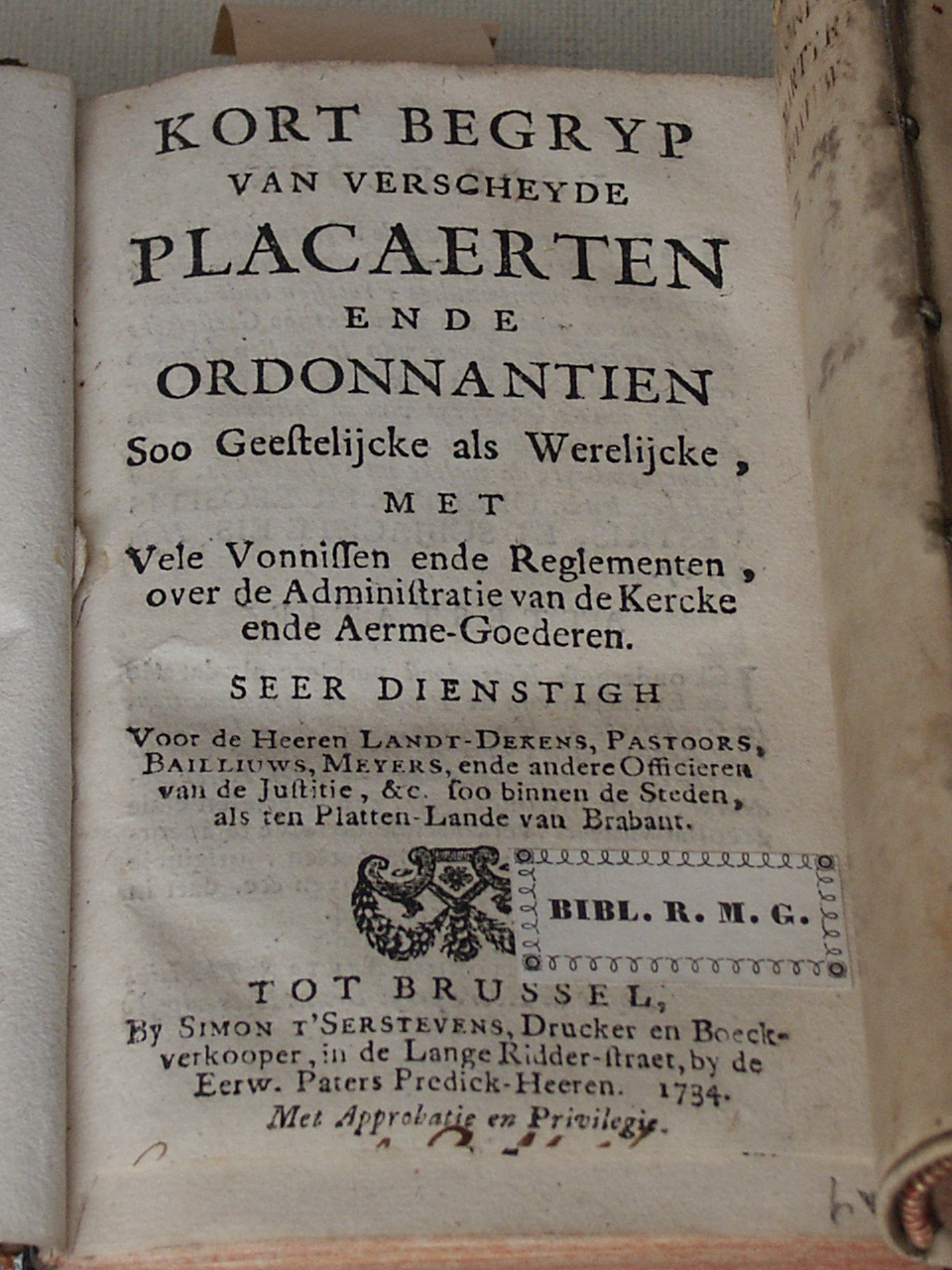 Kort begryp van verscheyde placaerten ende ordonnanten. Soo geestelijcke als werelijcke, met vele vonnissen ende reglementen, over de administratie van de kercke ende aerme-goederen [...] Lande van Brabant