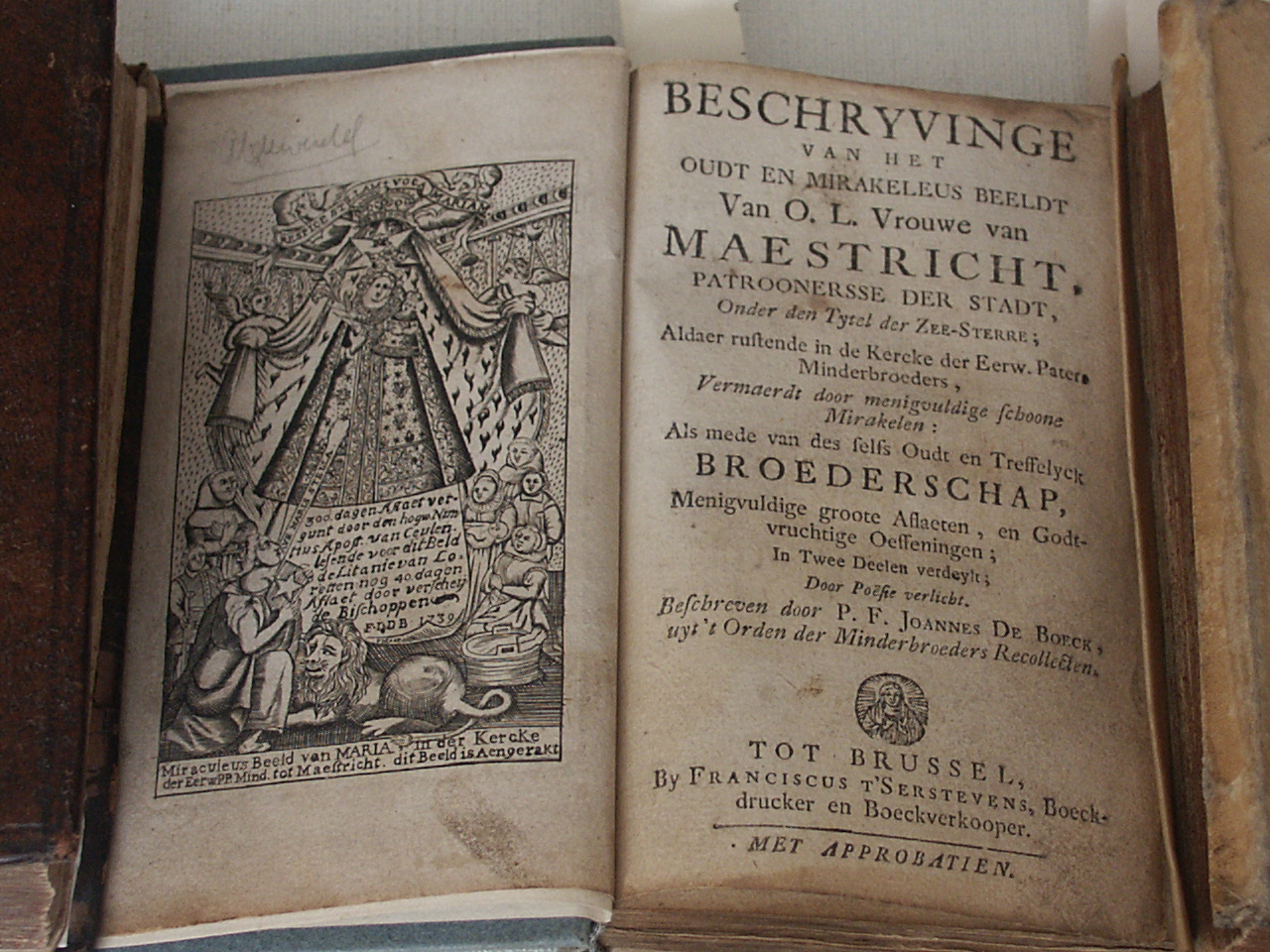 Beschryvinge van het oudt en mirakeleus beeldt van O.L. Vrouwe van Maestricht, patroonersse der stadt, onder de tytel der Zee-sterre; aldaer rustende in de kercke der Eerw. Paters Minderbroeders [...] , als mede van des selfs oudt en treffelyck broederschap [...] in twee deelen verdeylt, door poésie verlicht.