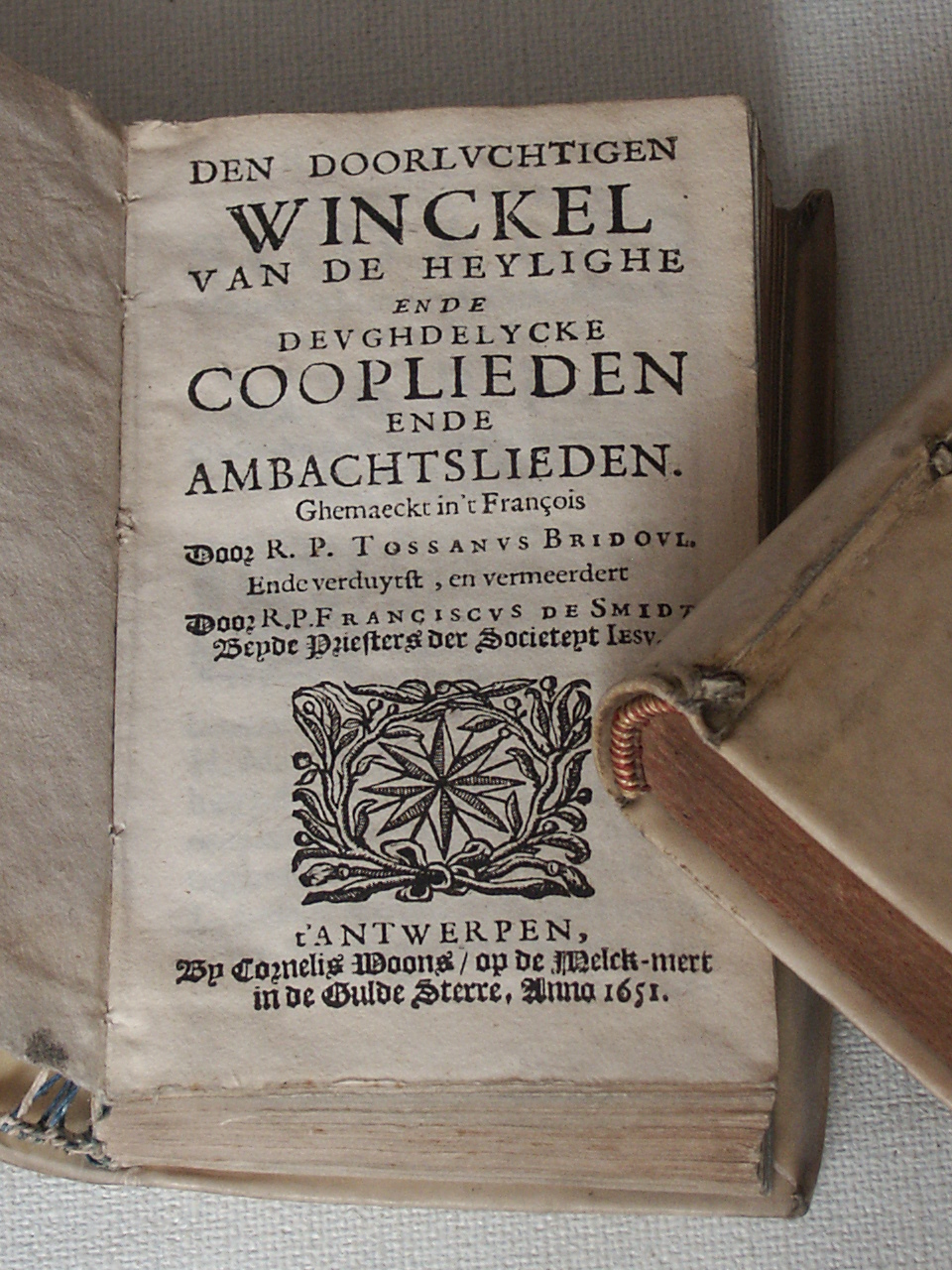 Den doorluchtigen winckel van de heylighe ende deughdelycke cooplieden ende ambachtslieden. Ghemaect in 't François door R. P. Tossanus Bridoul ende verduytst, en vermeerdert door R. P. Françiscus de Smidt. Beide priesters der societeyt Jesu.