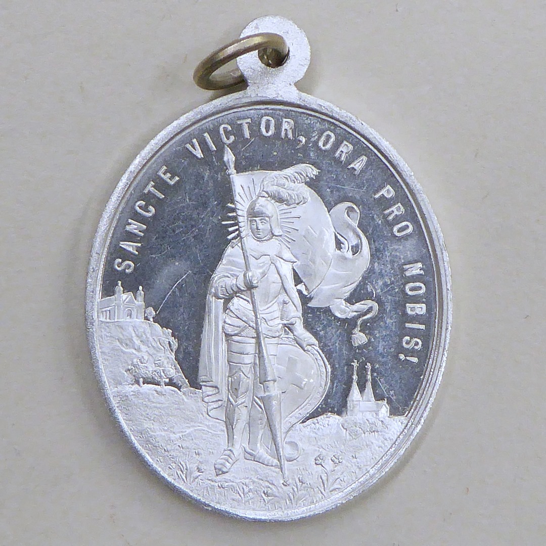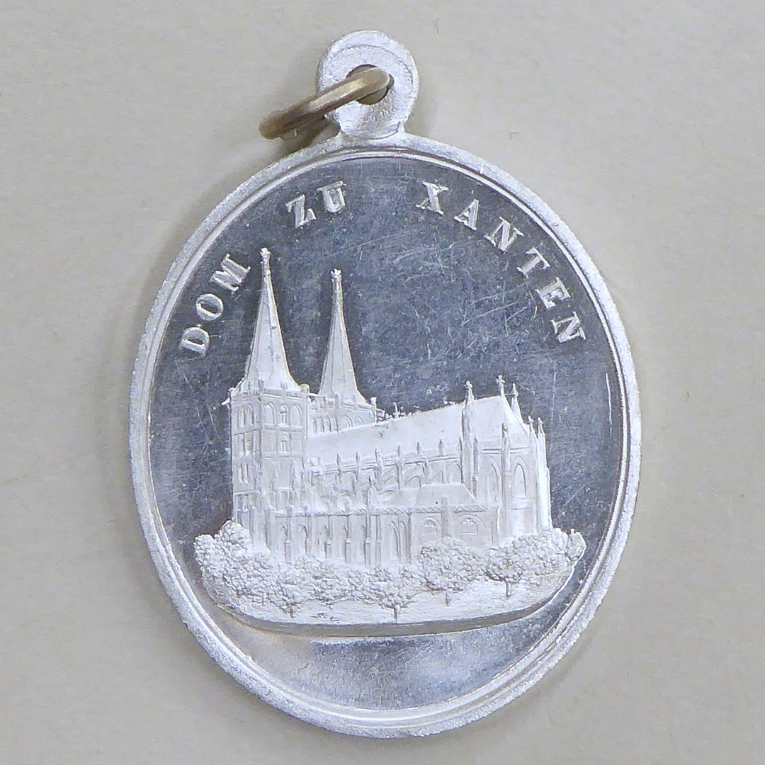 Medaille St. Victor te Xanten met op achtergrond kathedraal en kerkje, kz. dom te Xanten