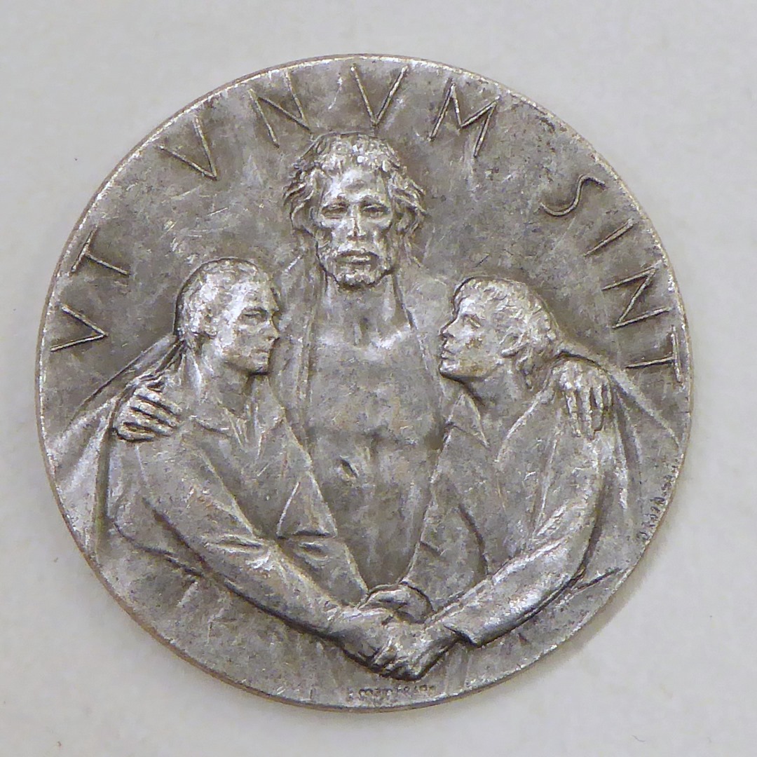Gedenkpenning H. Jaar 1975 met "Ut unum sint" en Emmausgangers, kz. vier aartsbasilieken