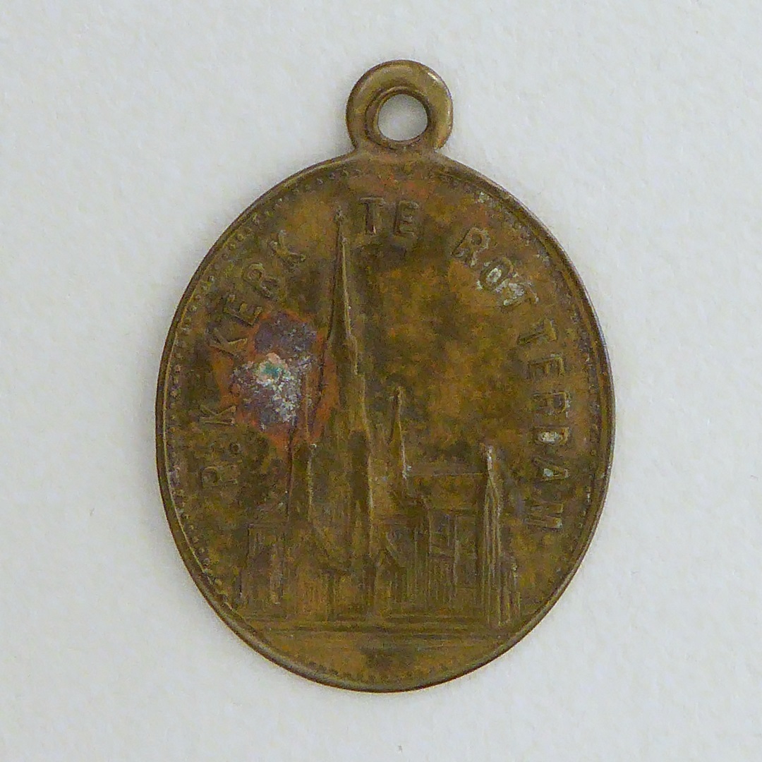 Devotiepenning, ovaal, met H. Hildegardis, kz. R.K. kerk te Rotterdam Hillegersberg