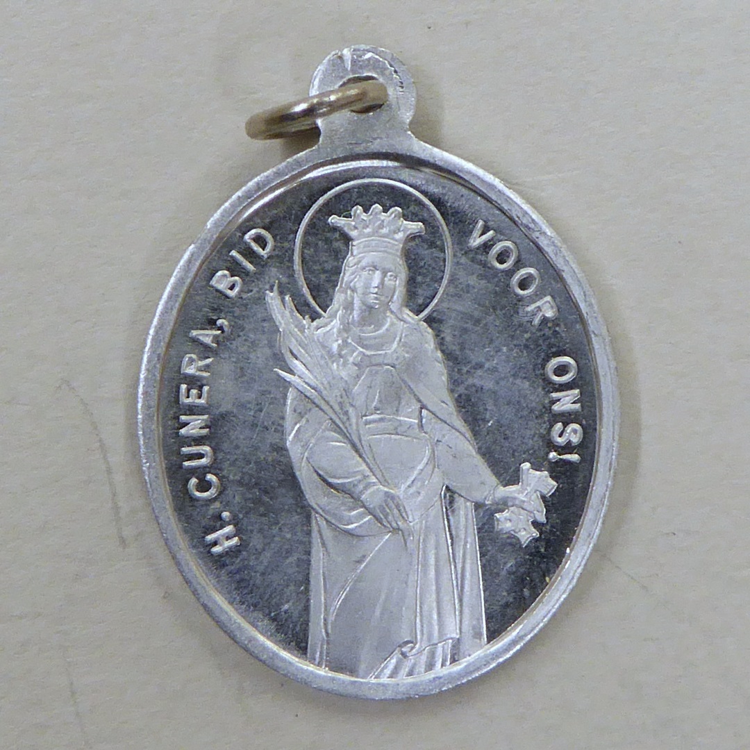 Bedevaartspenning, ovaal, met H. Cunera, kz. O.L.V. van Altijddurende Bijstand