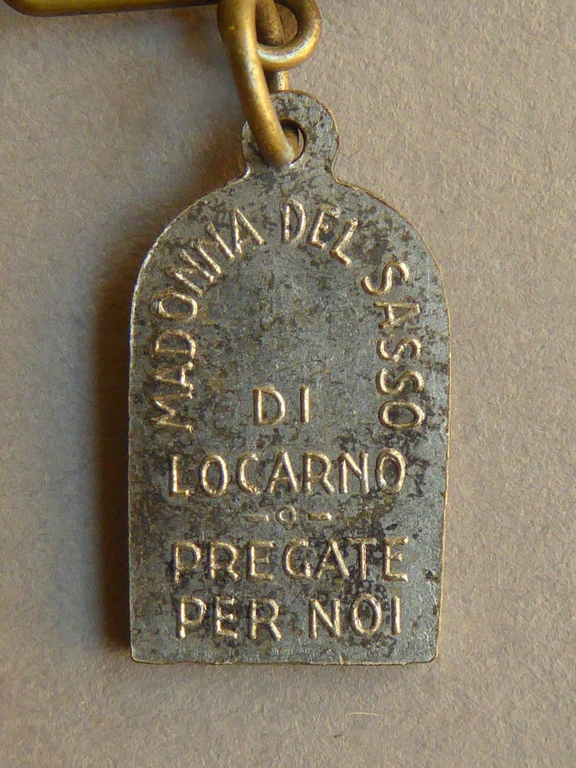 Bedevaartspenning O.L.V. van Locarno met Maria met kind, kz. met "Madonna del Sasso di Locarno .."