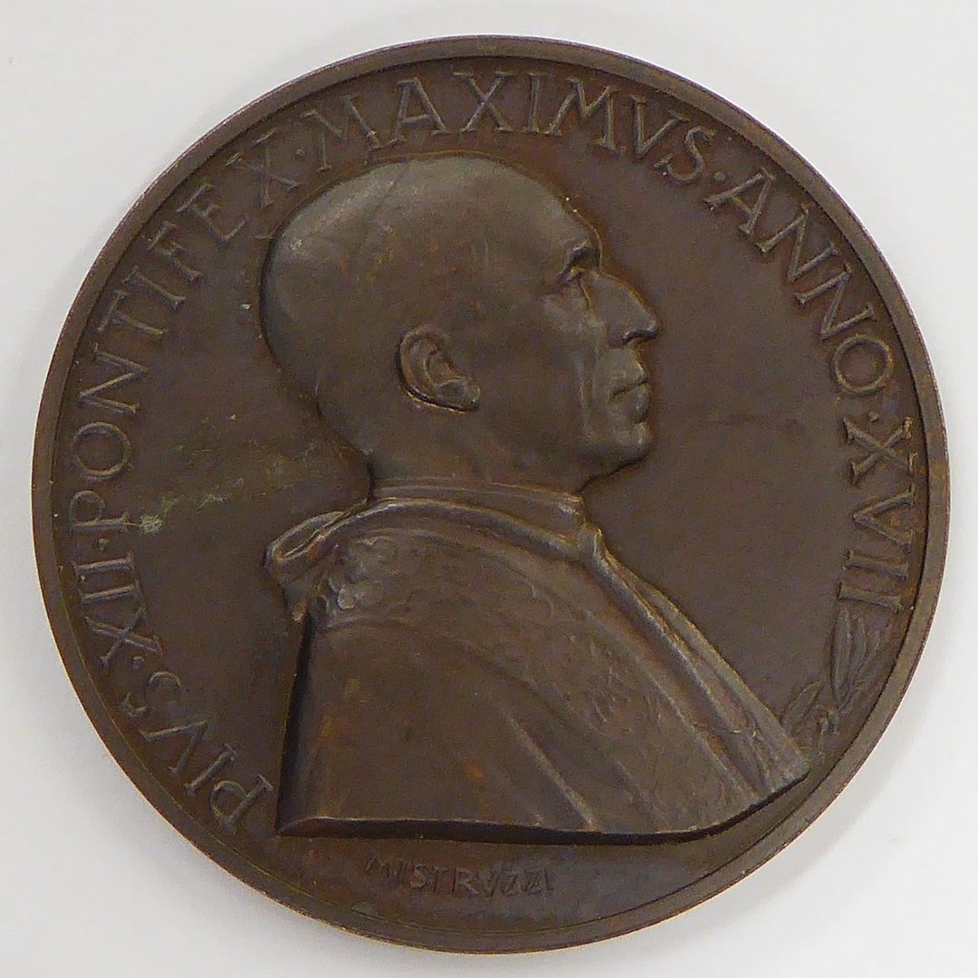 Pauspenning met portret paus Pius XII (1939-1958), kz. kroning van Maria door paus