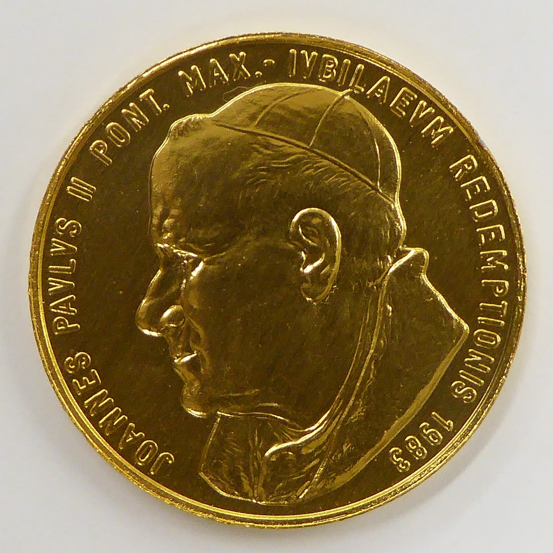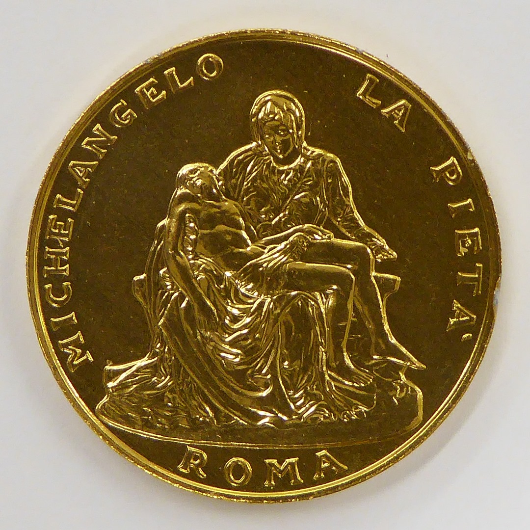 Goudkleurige pauspenning met portret paus Johannes Paulus II (1978-2005), piëta van Michelangelo