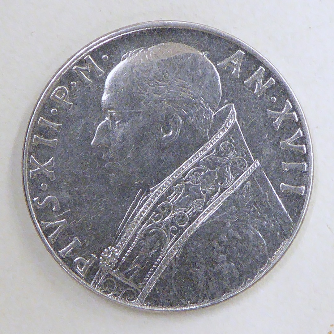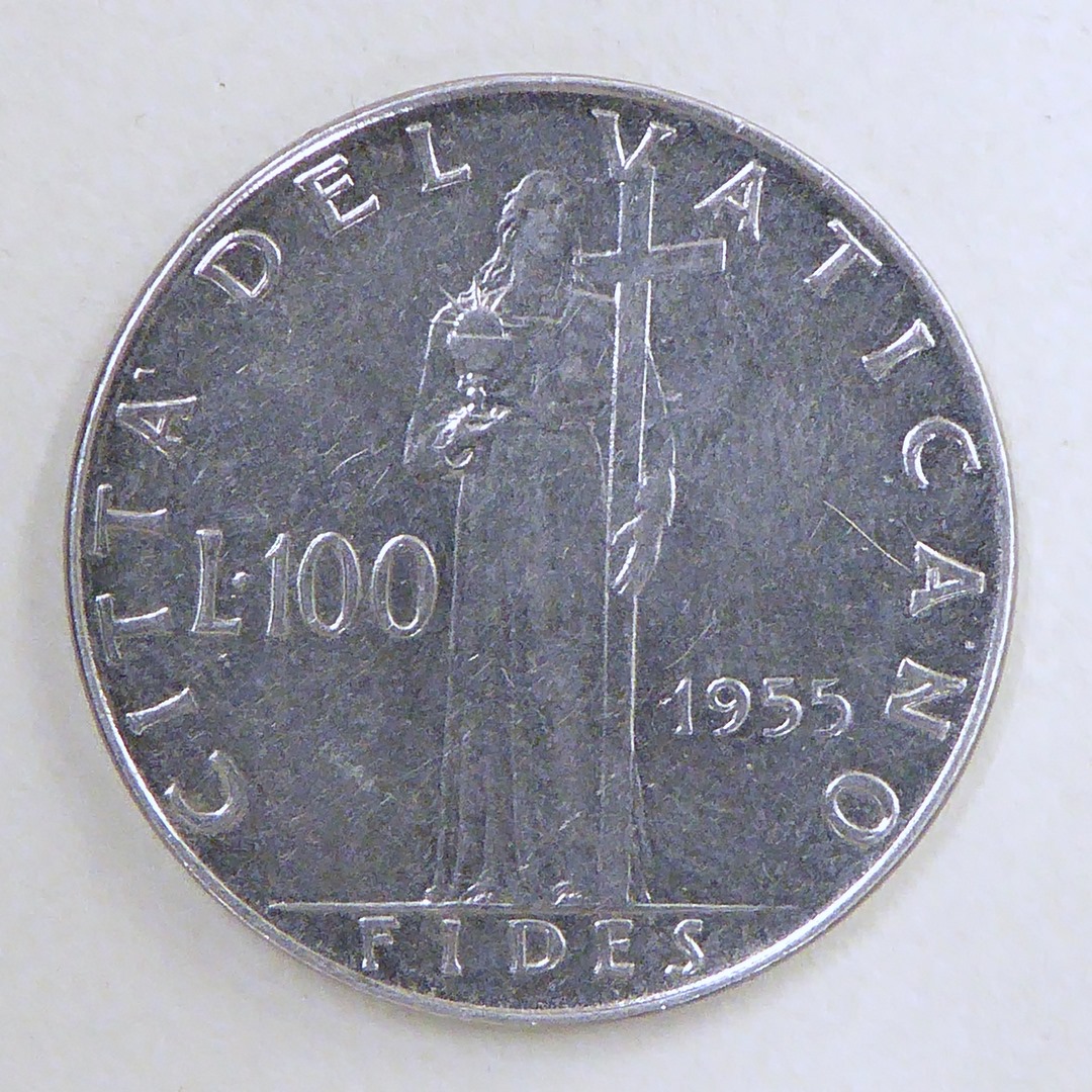 Pausmunt (100 lire) met afbeelding van Fides, kz. portret paus Pius XII