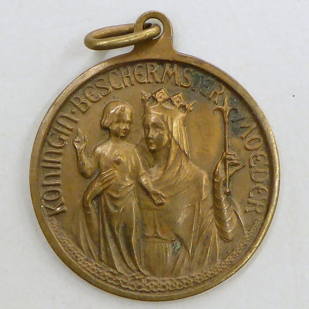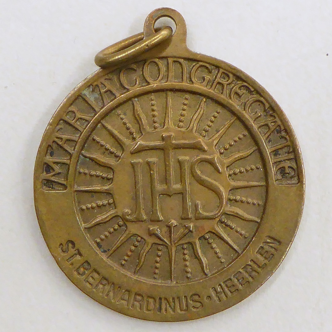 Lidmaatschapspenning Mariacongregatie met Maria met kind en "Koningin, ...", kz. "IHS" en "... St. Bernardus - Heerlen"
