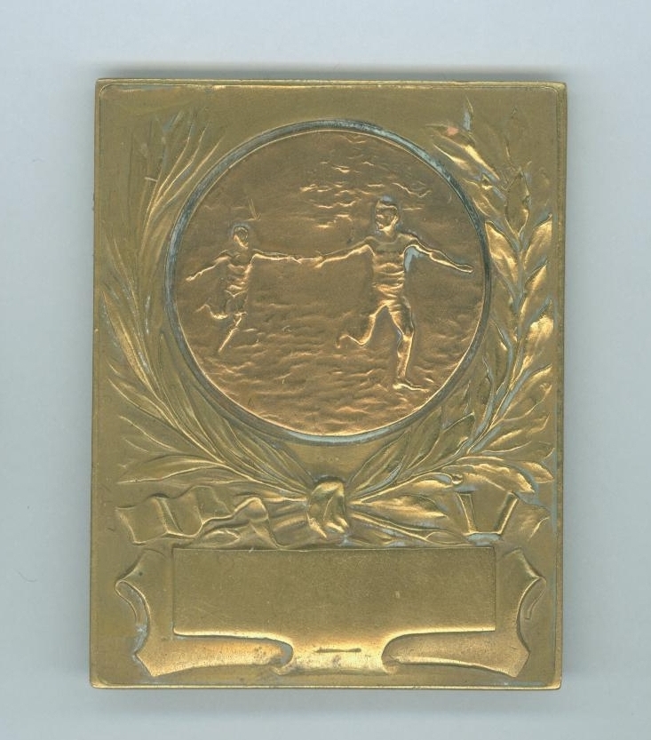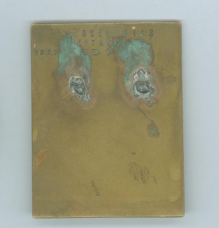 Plaquette met twee estafettelopers, kz. met "Wisselprijs estafette 1923 H.B.J."