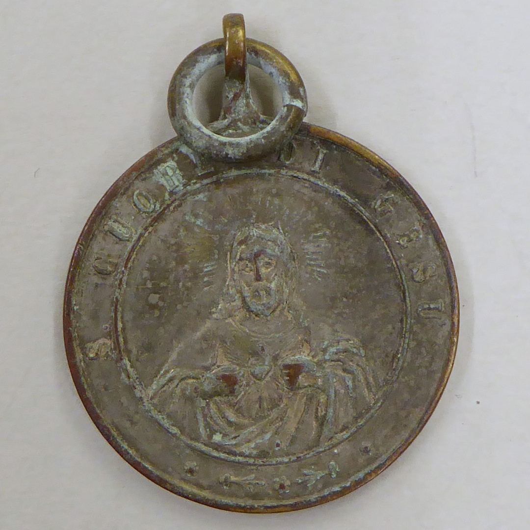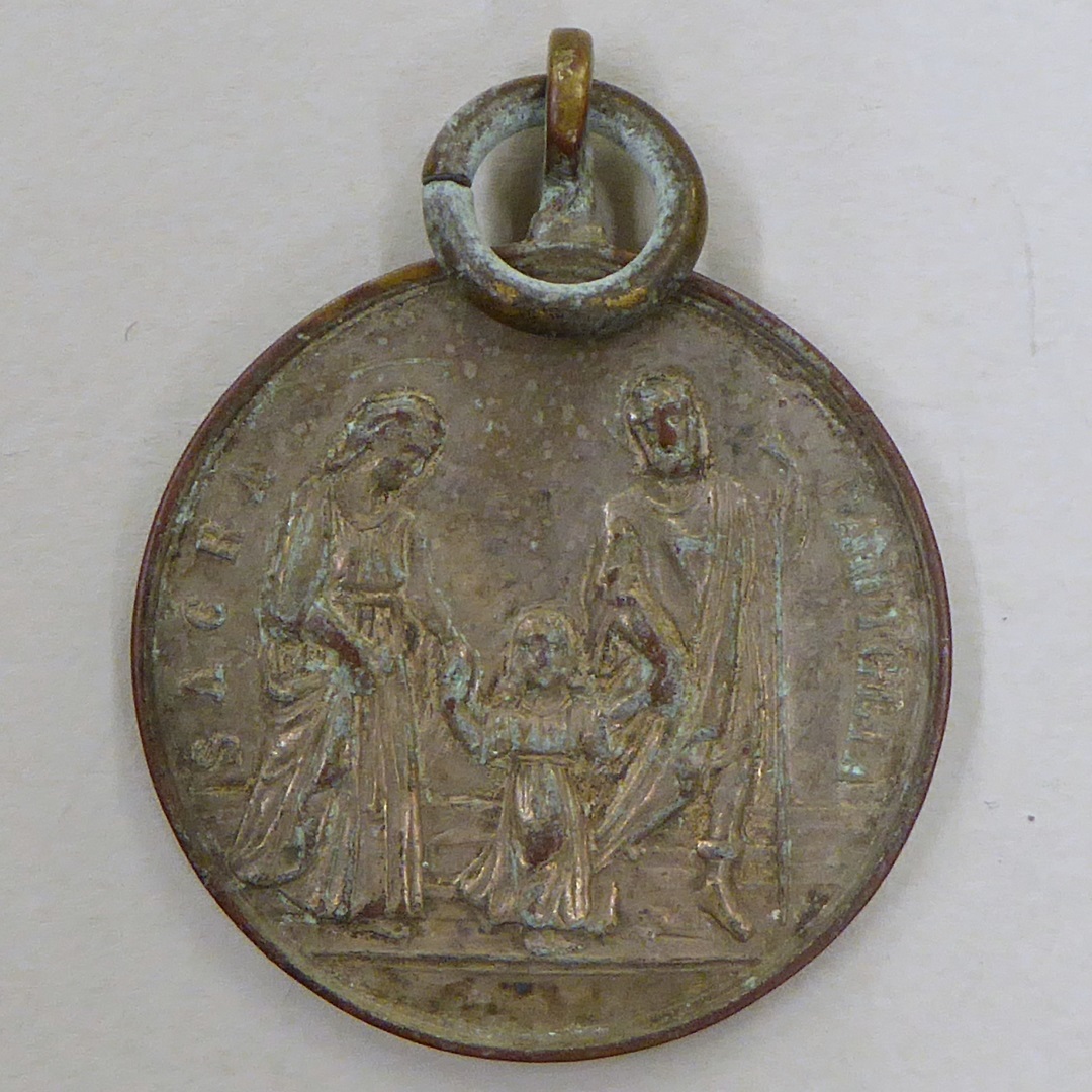 Scapulierpenning met H. Familie aan de wandel, kz. Christus H. Hart