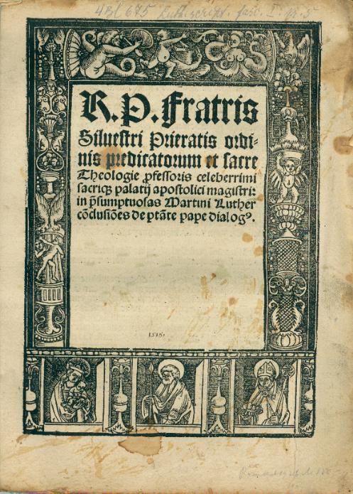 Prierias R.P. Fratris Siluestri Prieratis ordinis predicatorum et sacre Theologie professoris celeberrimi sacrique palatij apostolici magistri in praesumptuosas Martini Luther conclusiones de potestate pape dialogus